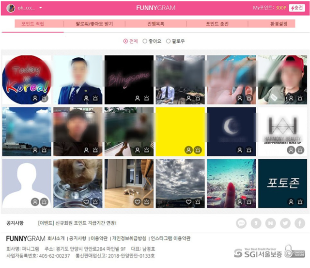 퍼니그램은 회원가입을 하지 않아도 포인트 적립을 해서 팔로워를 늘릴 수 있는 사이트에요. 유료 서비스가 아니라서 많은 분들이 찾으시는 것 같아요.